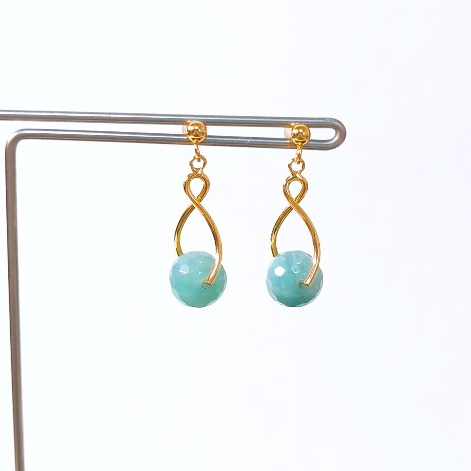 天然石アマゾナイト ツイストチャームのイヤリングorピアスは、シンプルながらも洗練されたデザインで、あらゆるシーンにフィットする素敵なイヤーアクセサリーです。