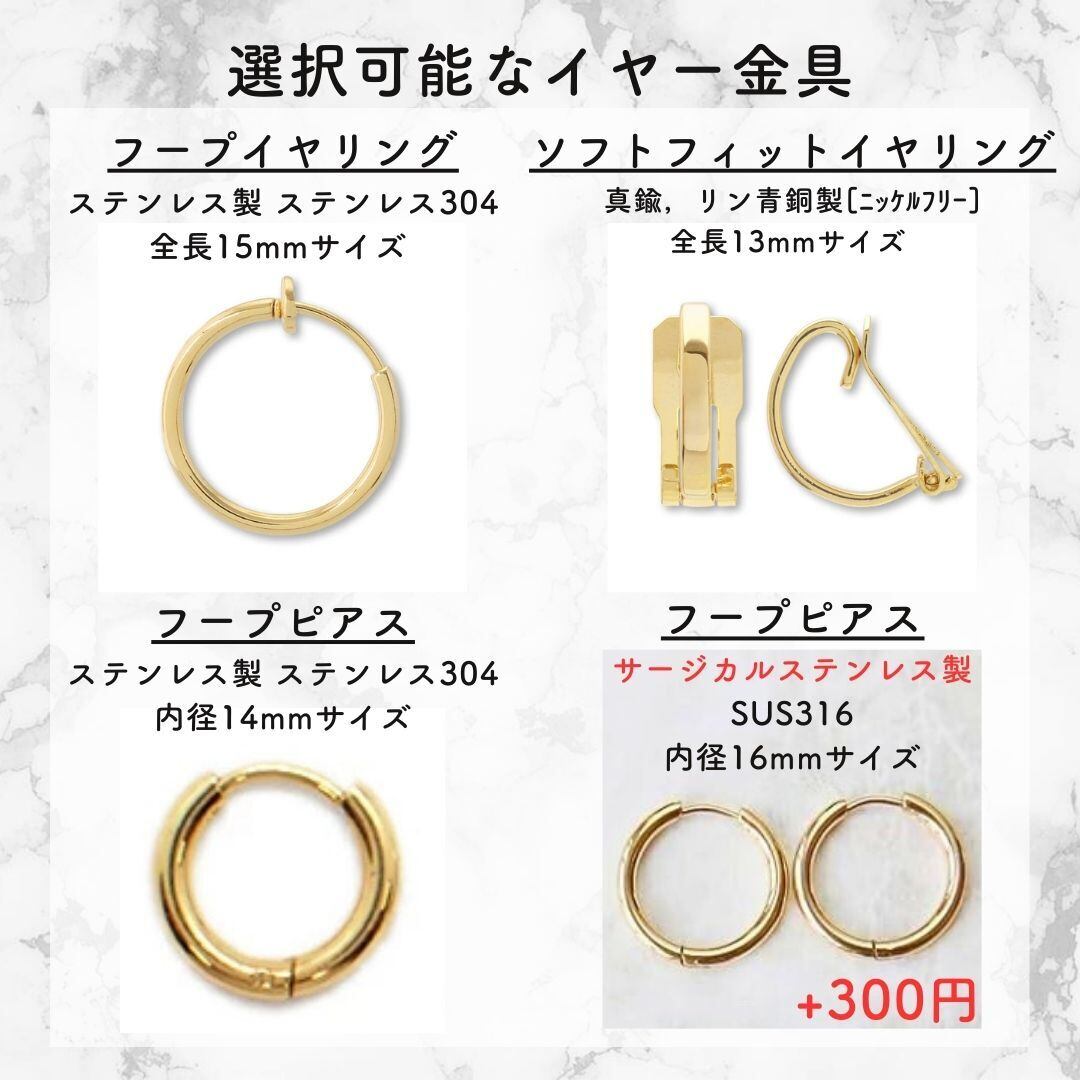 商品画像内「選択可能なイヤー金具」にてご確認ください。