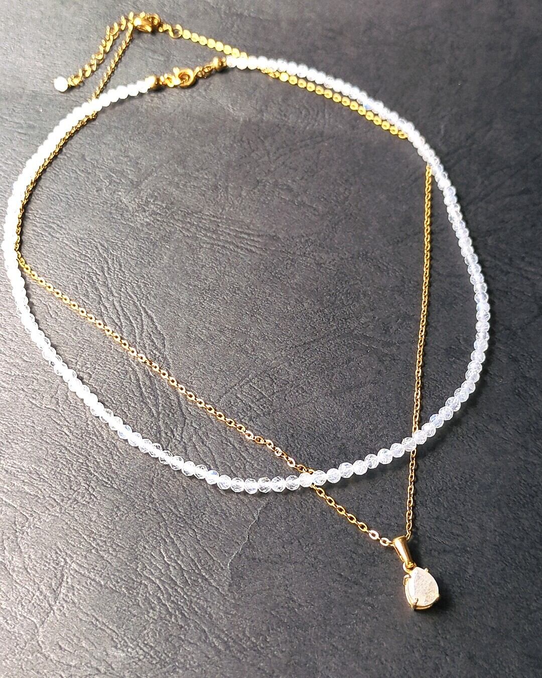 【ネックレス/2本セット】レインボームーンストーンの一連ネックレス / ペアシェイプファセットカットのペンダント