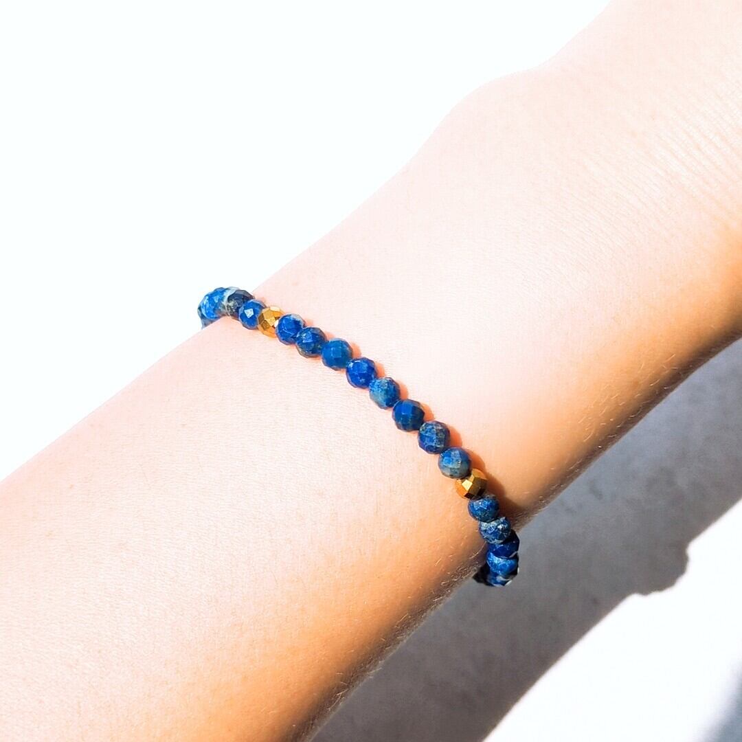 【天然石ラピスラズリ×ヘマタイト ゴールドコーティングのブレスレット】