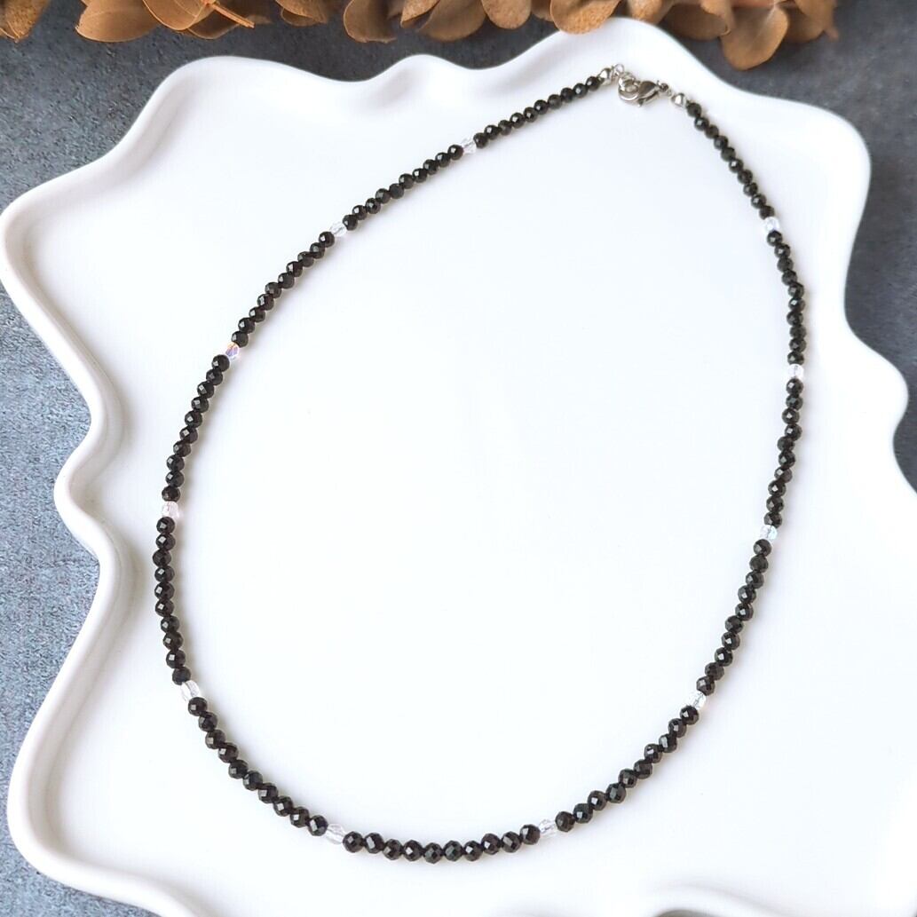 ブラックスピネル&チェコビーズ クリスタルのポイント使い ネックレス