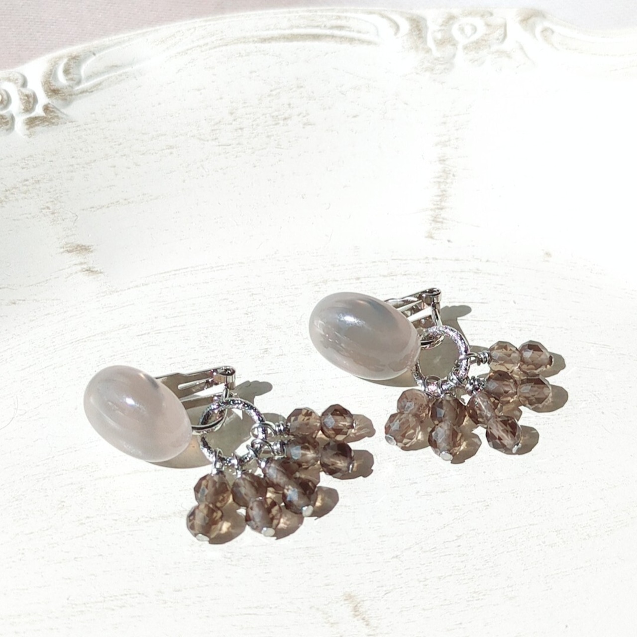 グレーオニキス オーバルカボション×スモーキークォーツのイヤリングorピアス