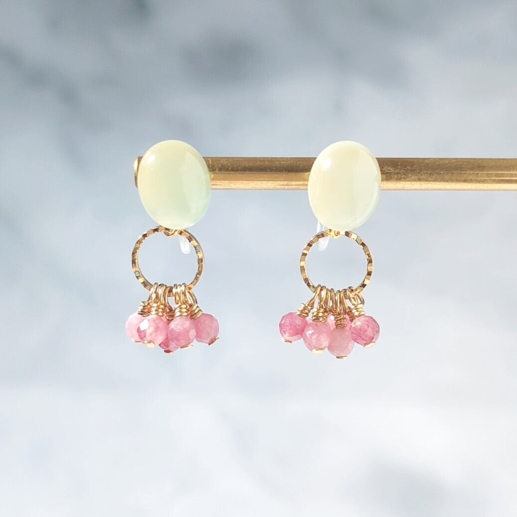 ×イエローカラー カルセドニー/ピンクトルマリンのイヤリングorピアス