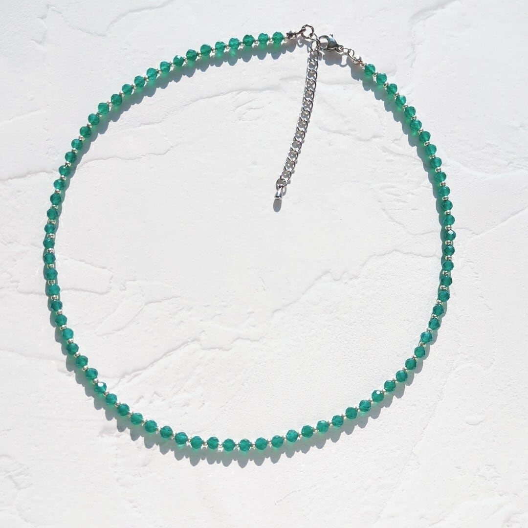 優美な緑色が目を引く上質なグリーンオニキスを使用した一連ネックレスです。