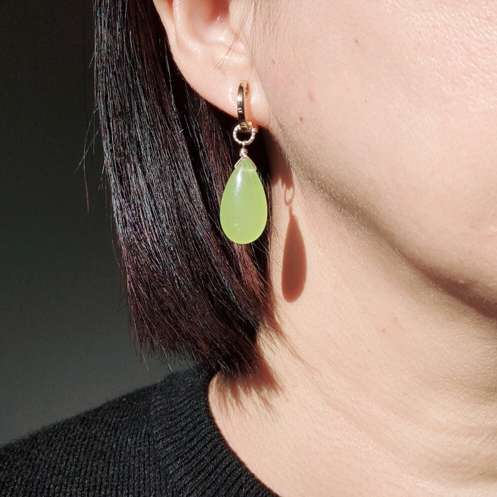 イエローグリーンージェード 大粒ペアシェイプのフープイヤリングorピアス