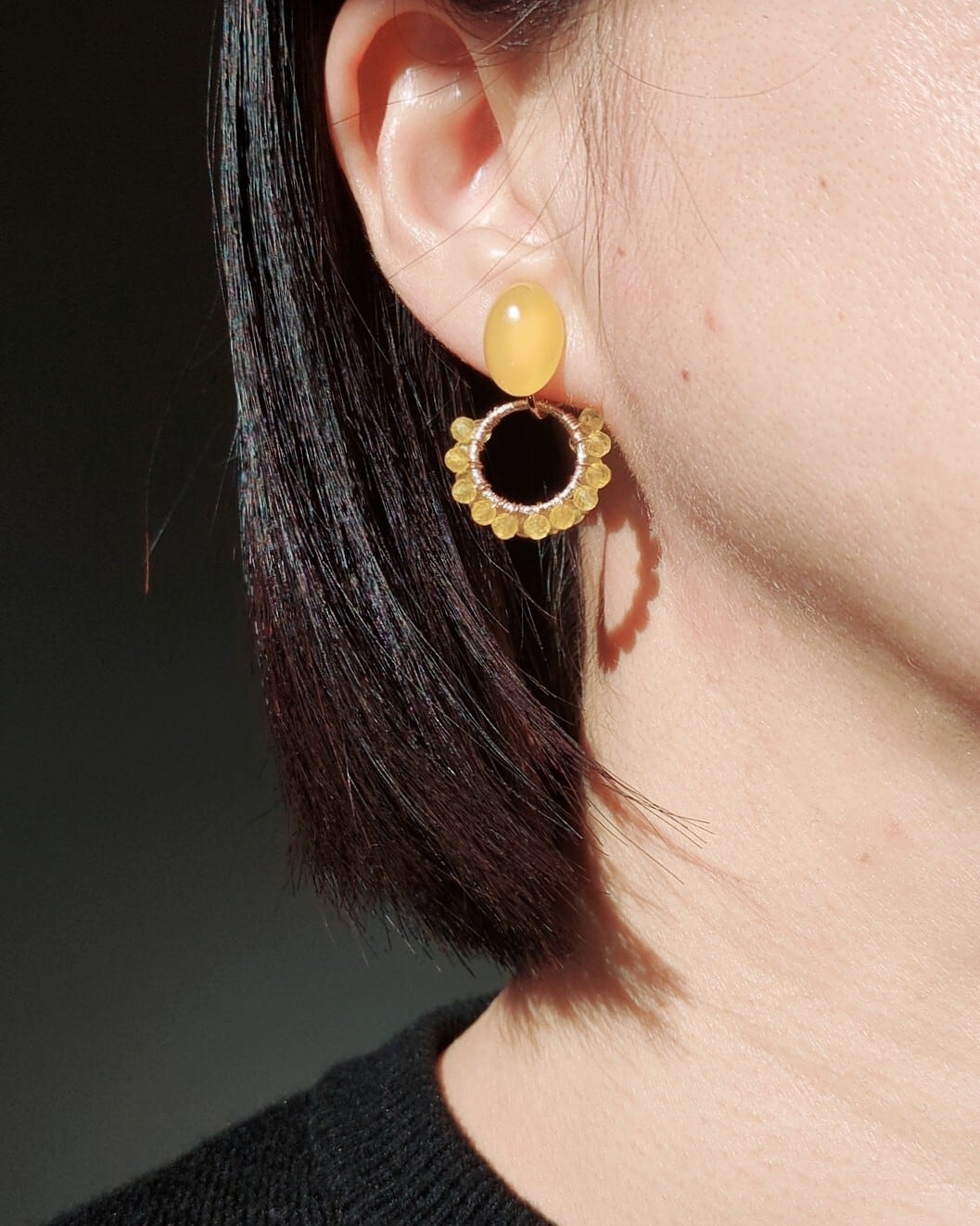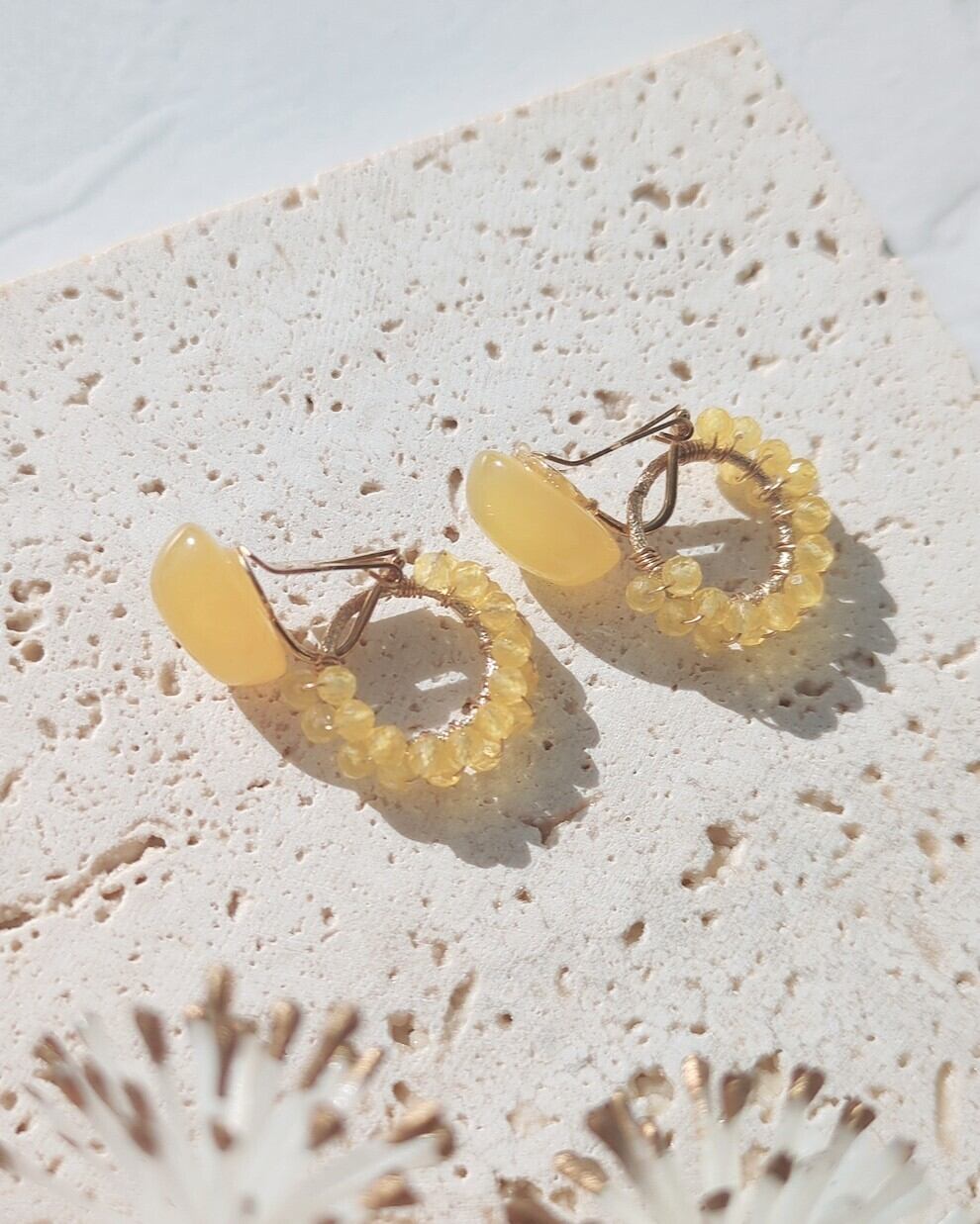 イエローカルセドニー オーバル カボション×ラウンドカットのイヤリングorピアス