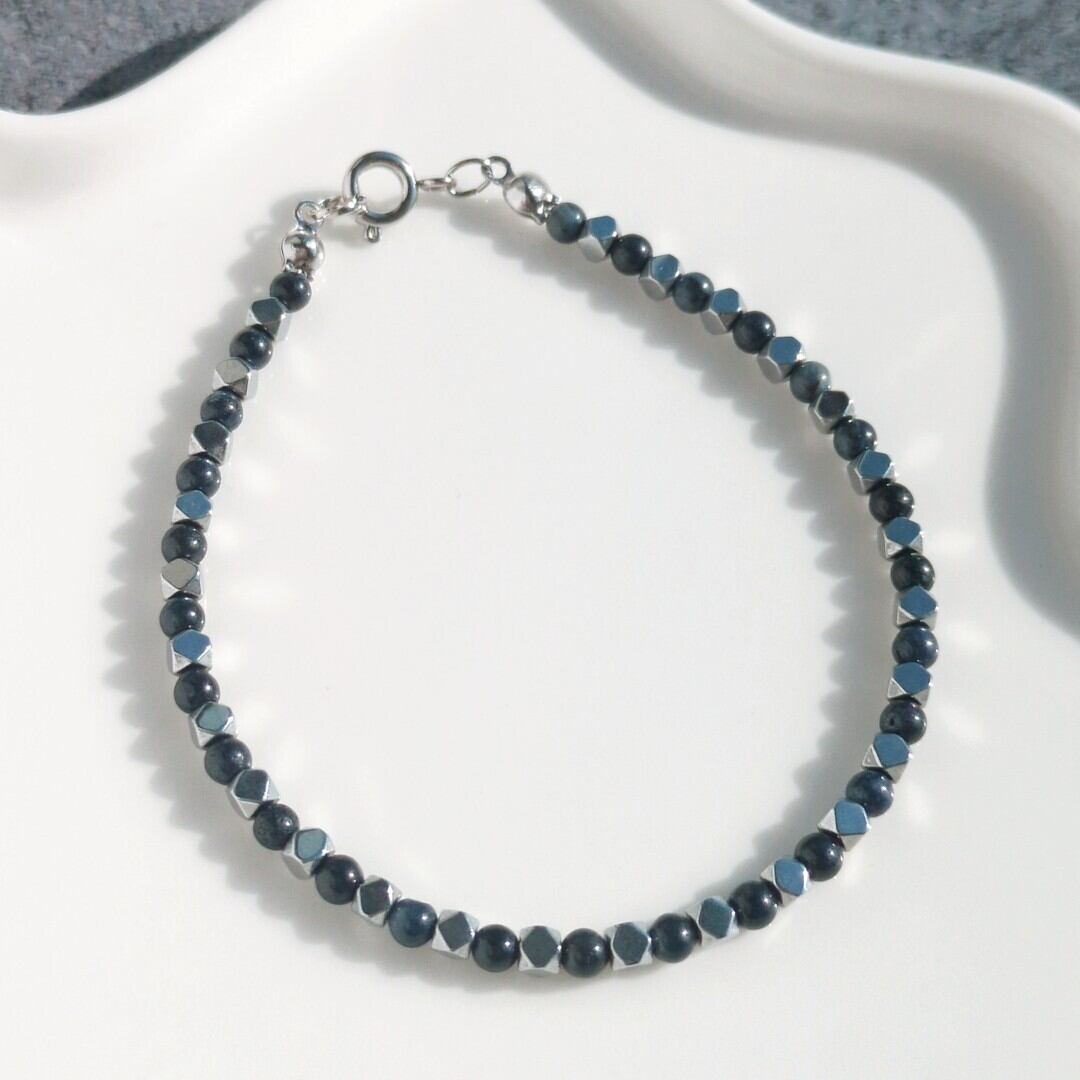 【クールなサファイヤとヘマタイトのブレスレット】