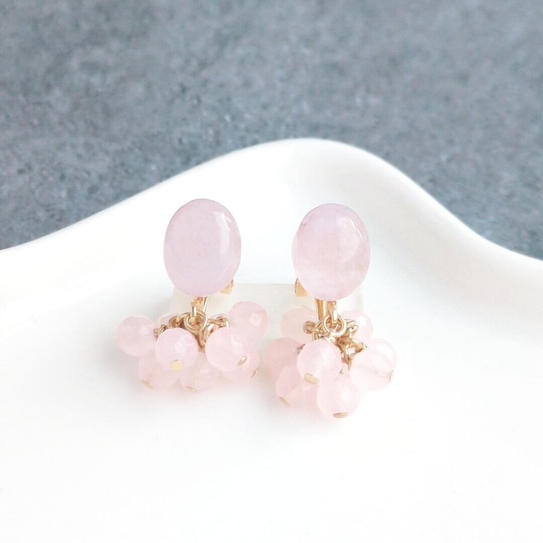 桜カラー♡ナイジェリア産クンツァイト オーバルカボション×ライトピンクジェード ラウンドカットのイヤリングorピアス