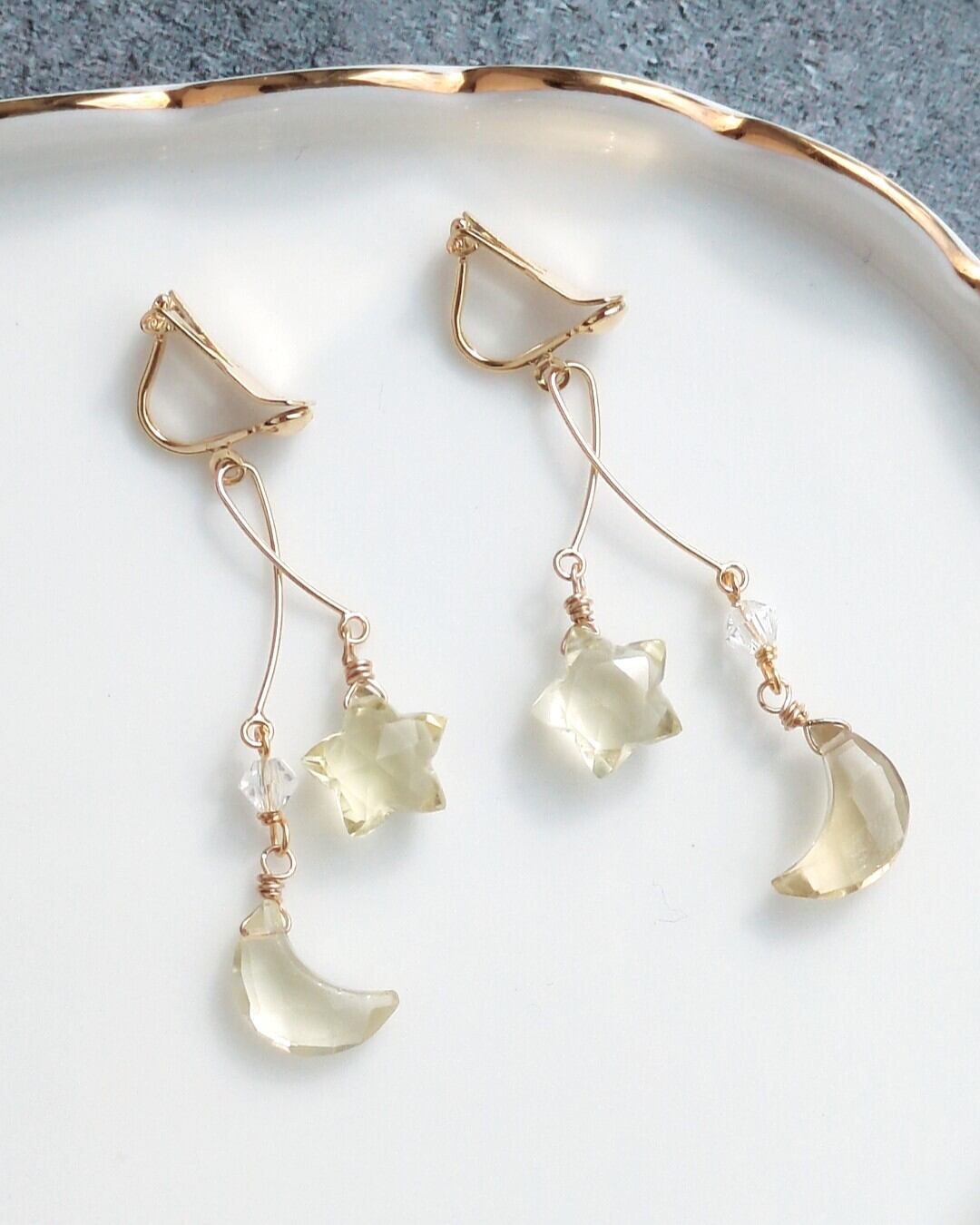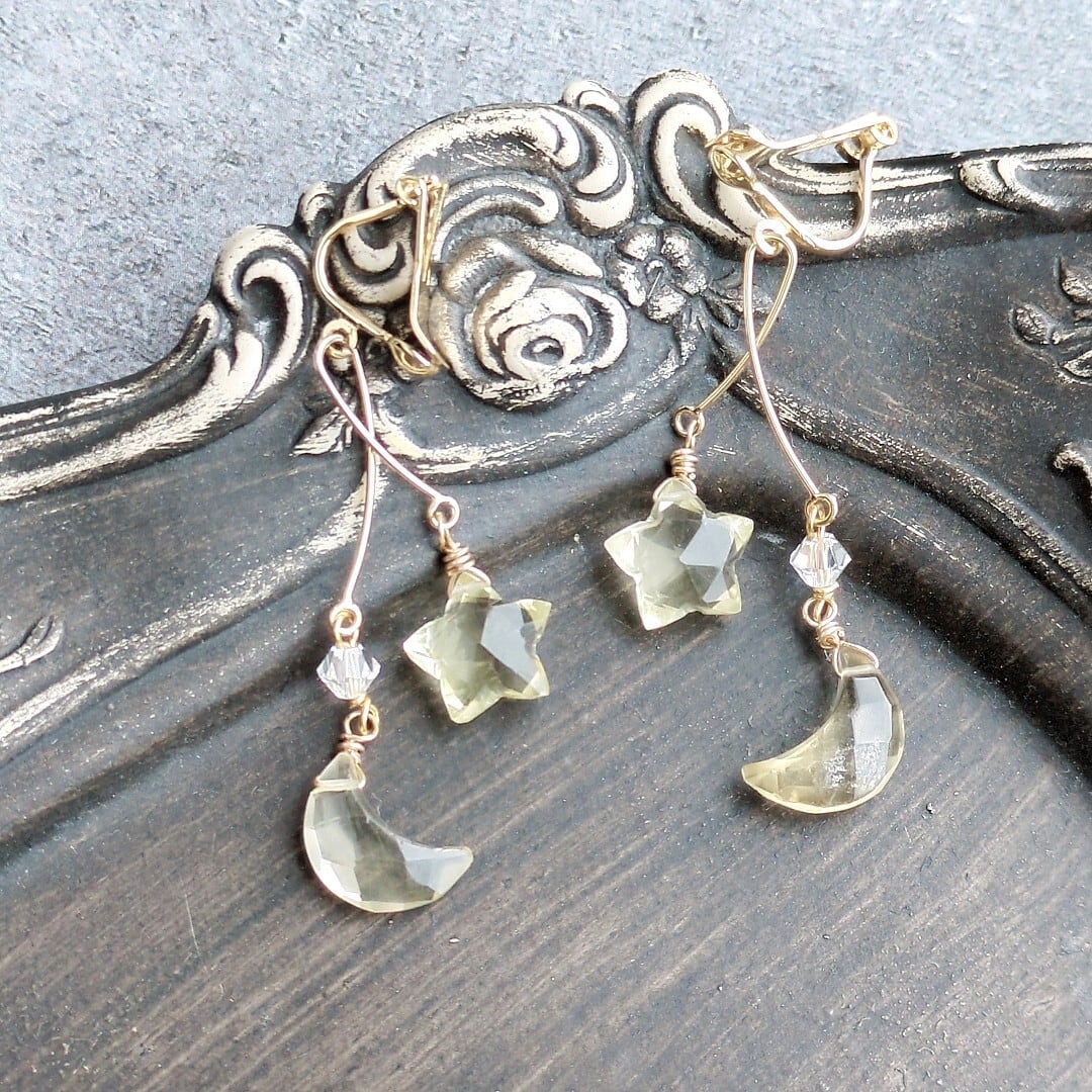 レモンクォーツ スターカット&ムーンカットのデザインイヤリングorピアス