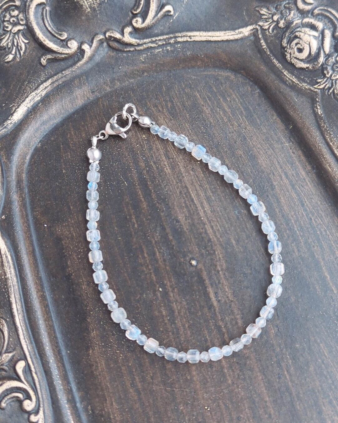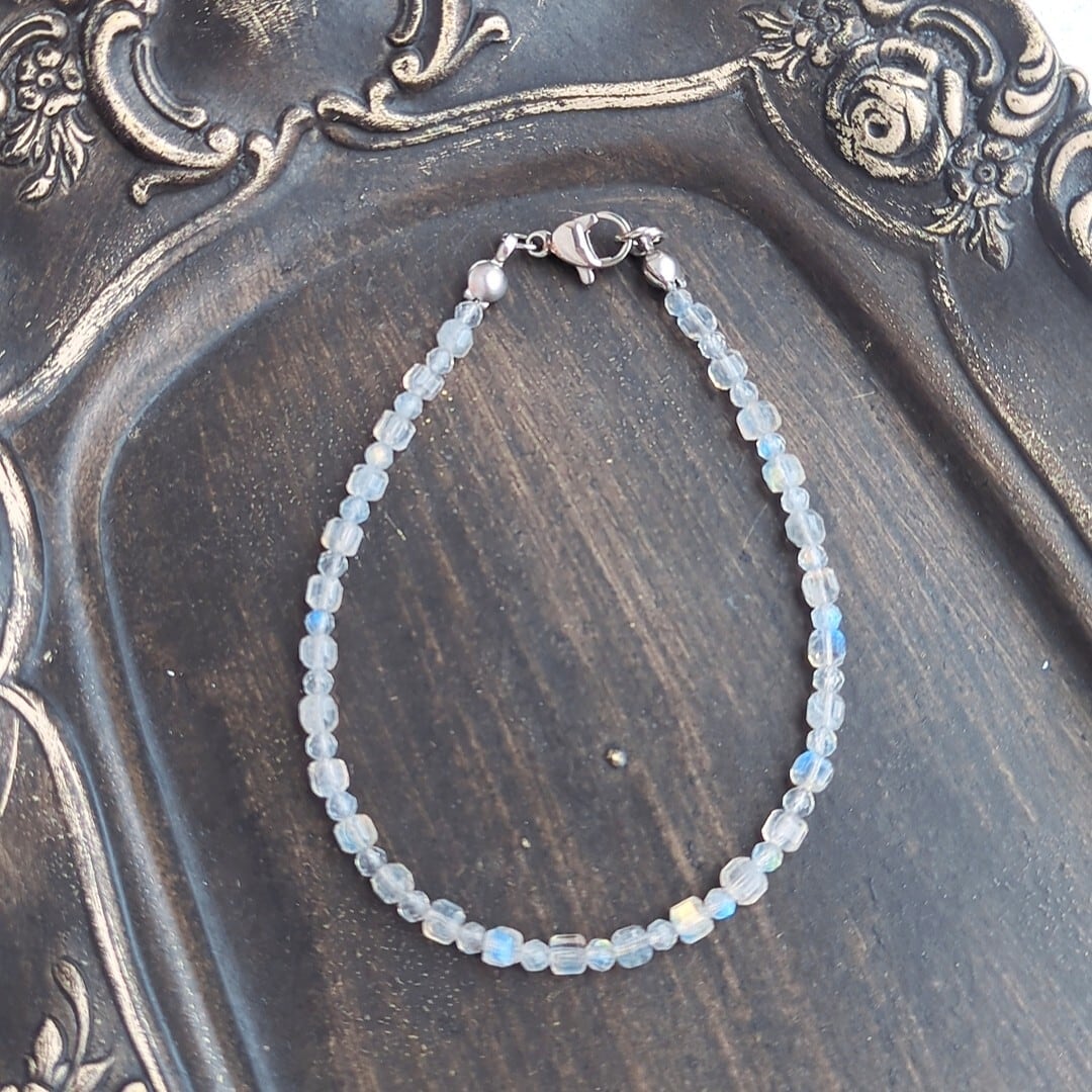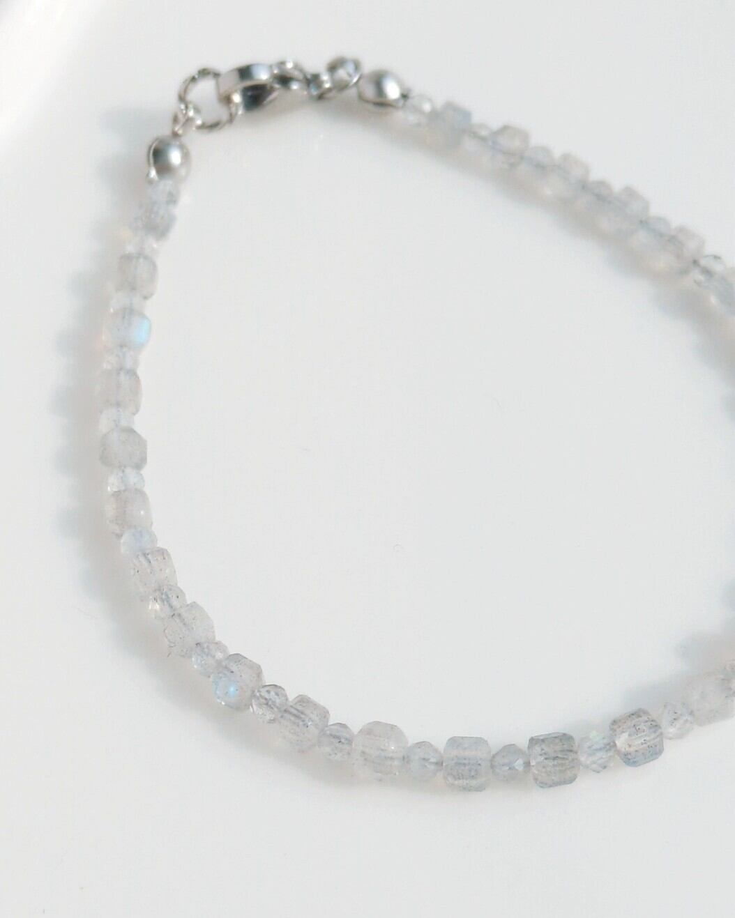 【ラブラドライト キューブカット×小粒ラウンドカットのブレスレット】