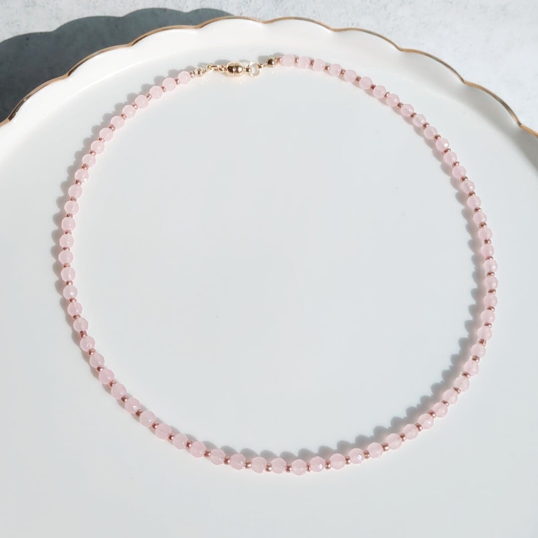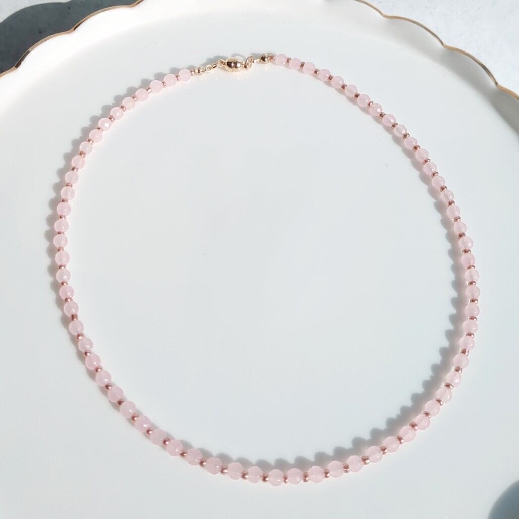 ライトピンクジェード 32面カット×ピンクゴールドカラー シードビーズの一連ネックレス~留め金具が6種類から選べる~