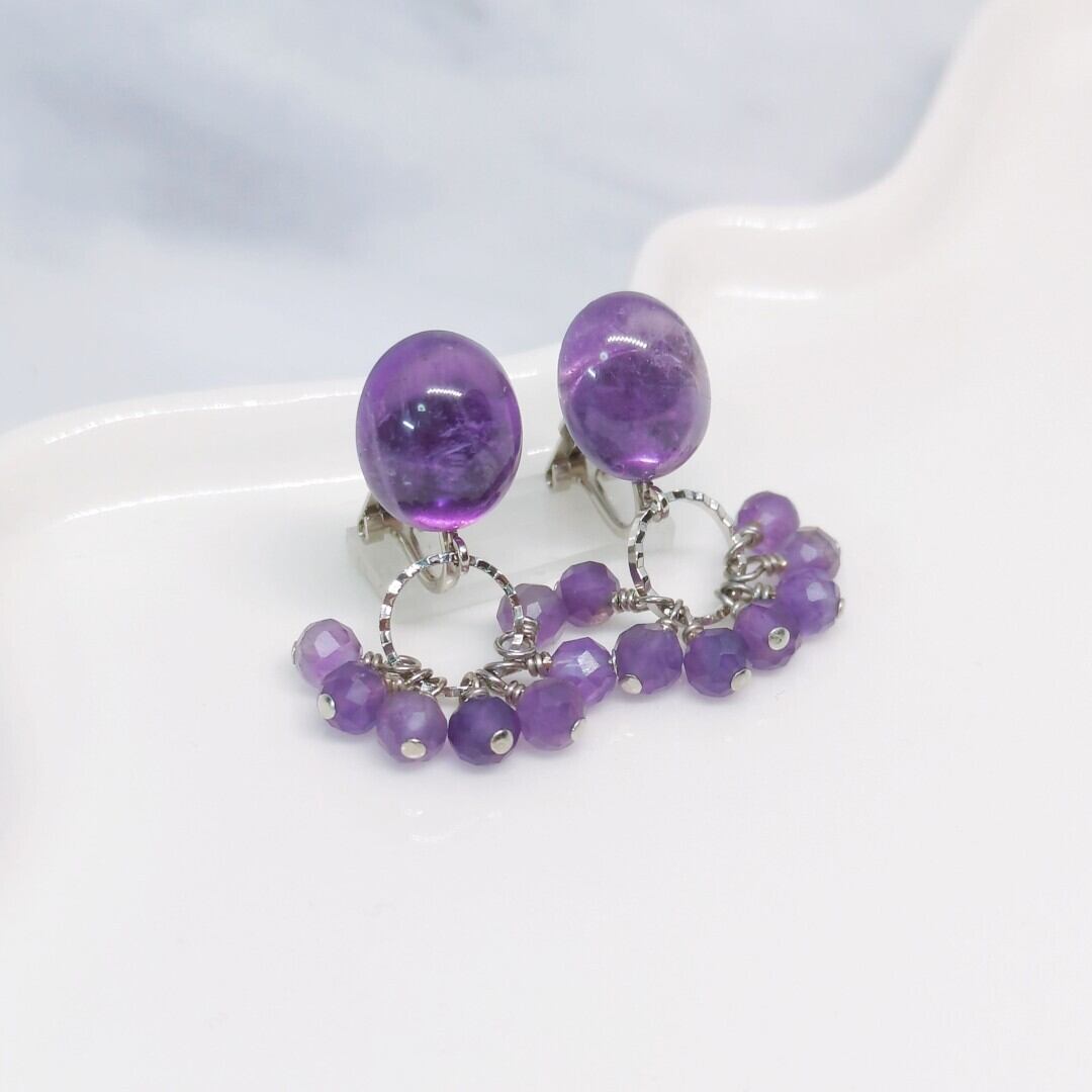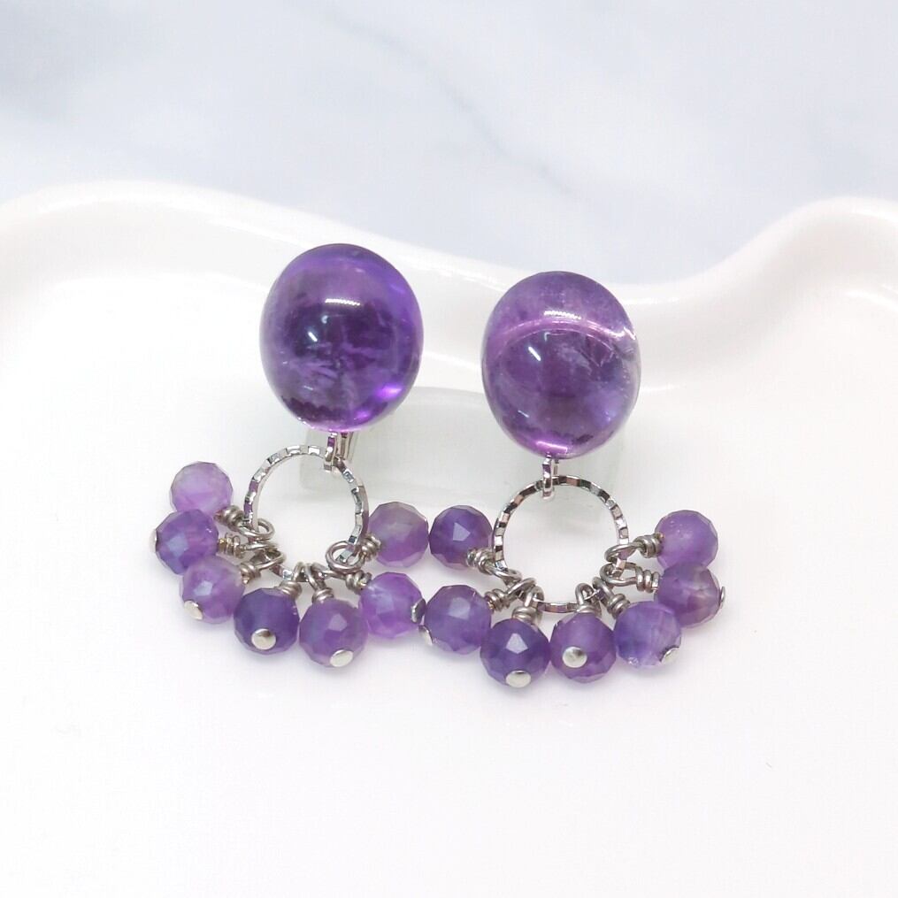 アメジスト オーバルカボション×アメジスト ラウンドカットのイヤリングorピアス