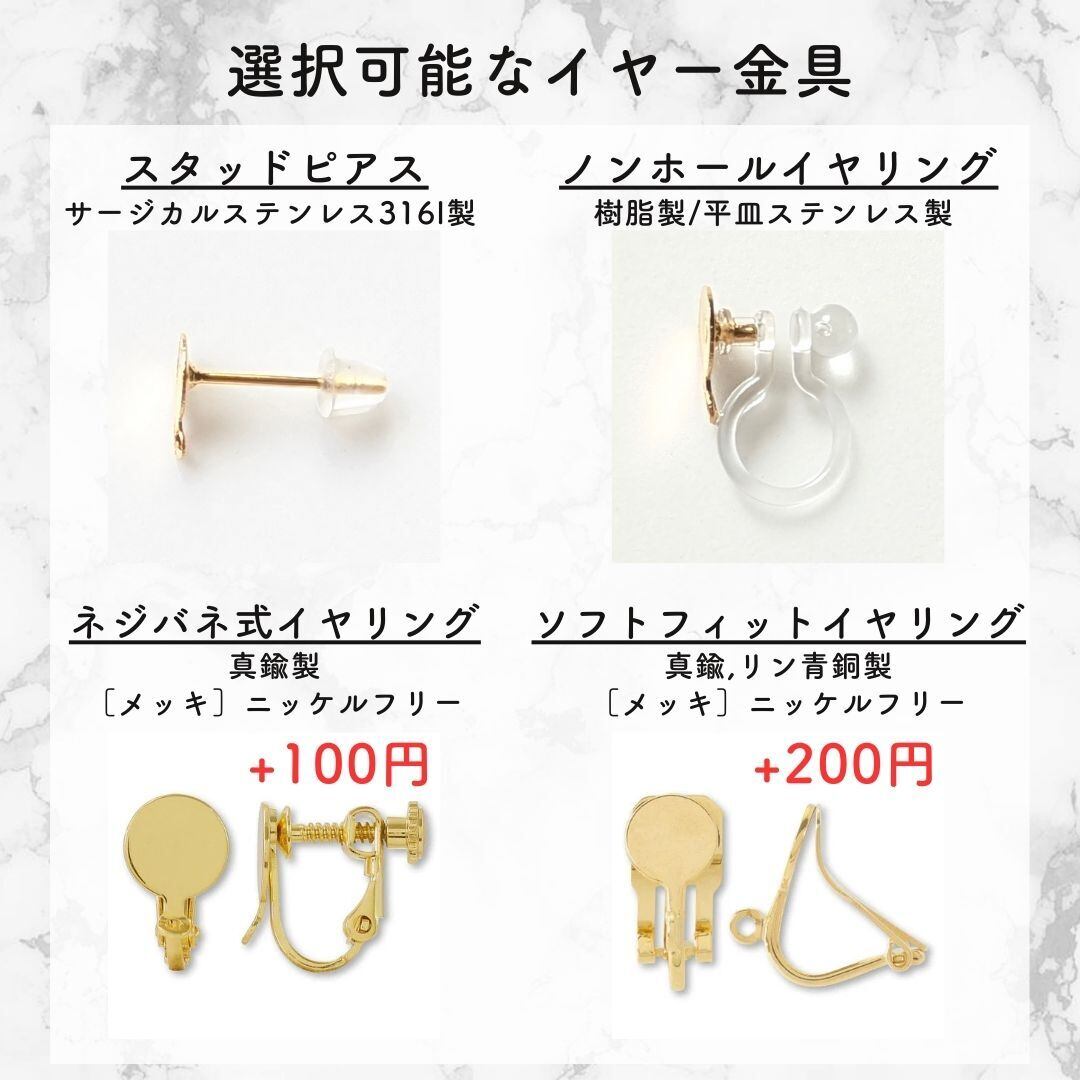 商品画像内『選択可能なイヤー金具』よりお選びください。