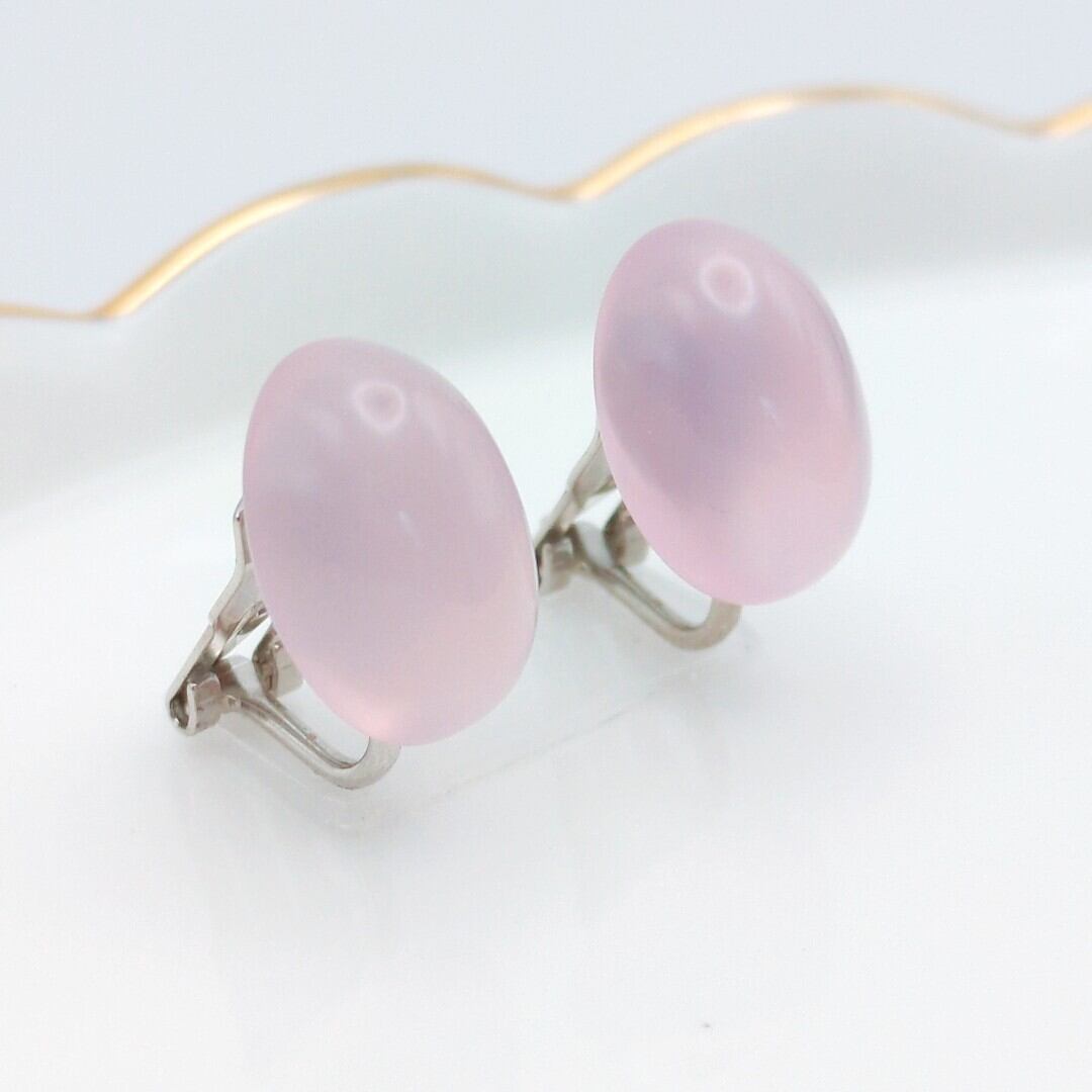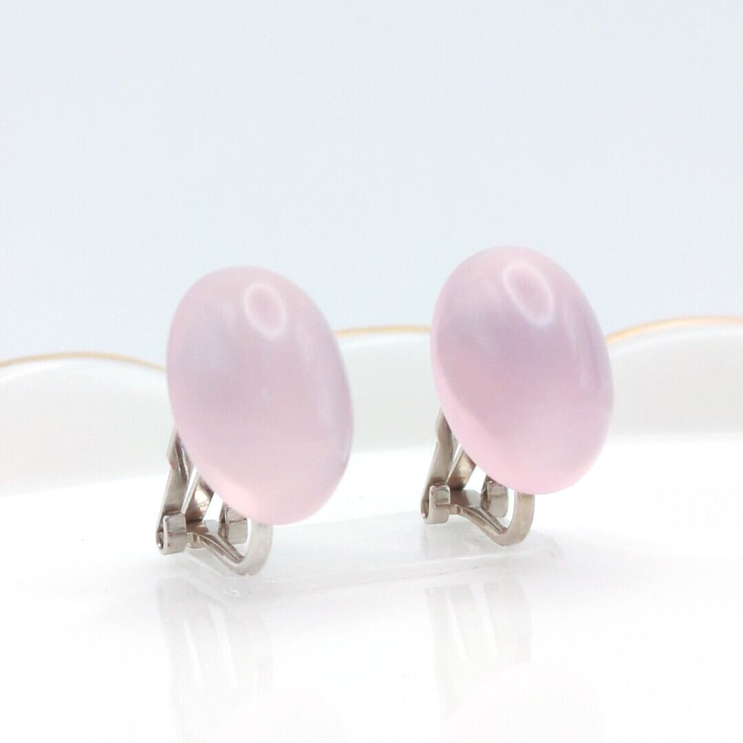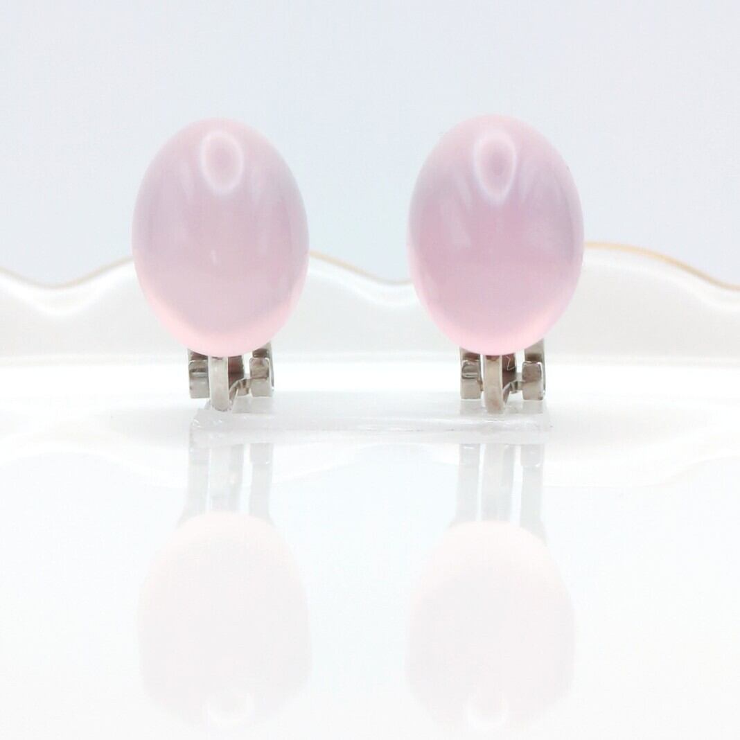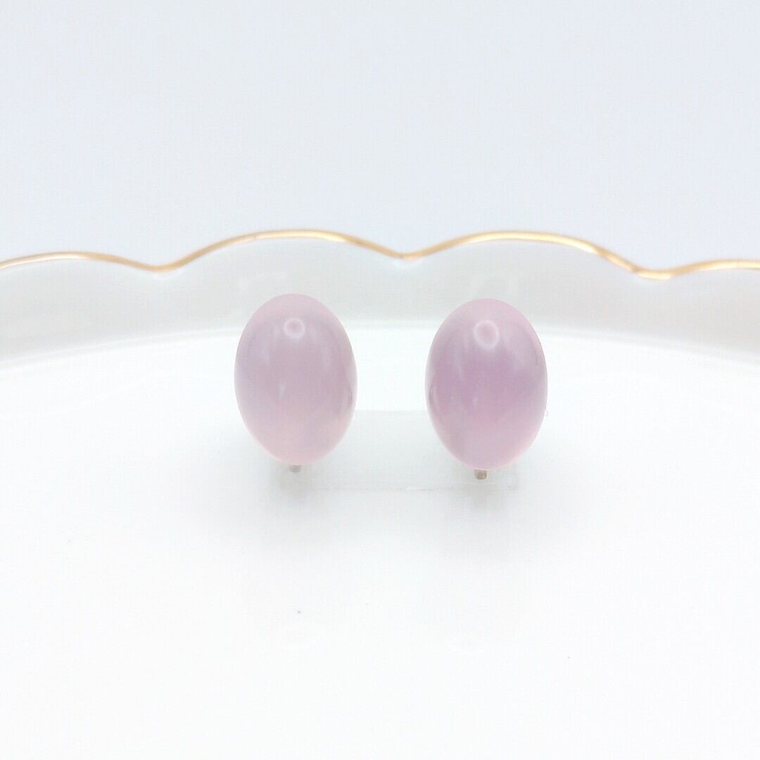宝石質ピンクパープルカルセドニー オーバルカボション 一粒イヤリングorピアス