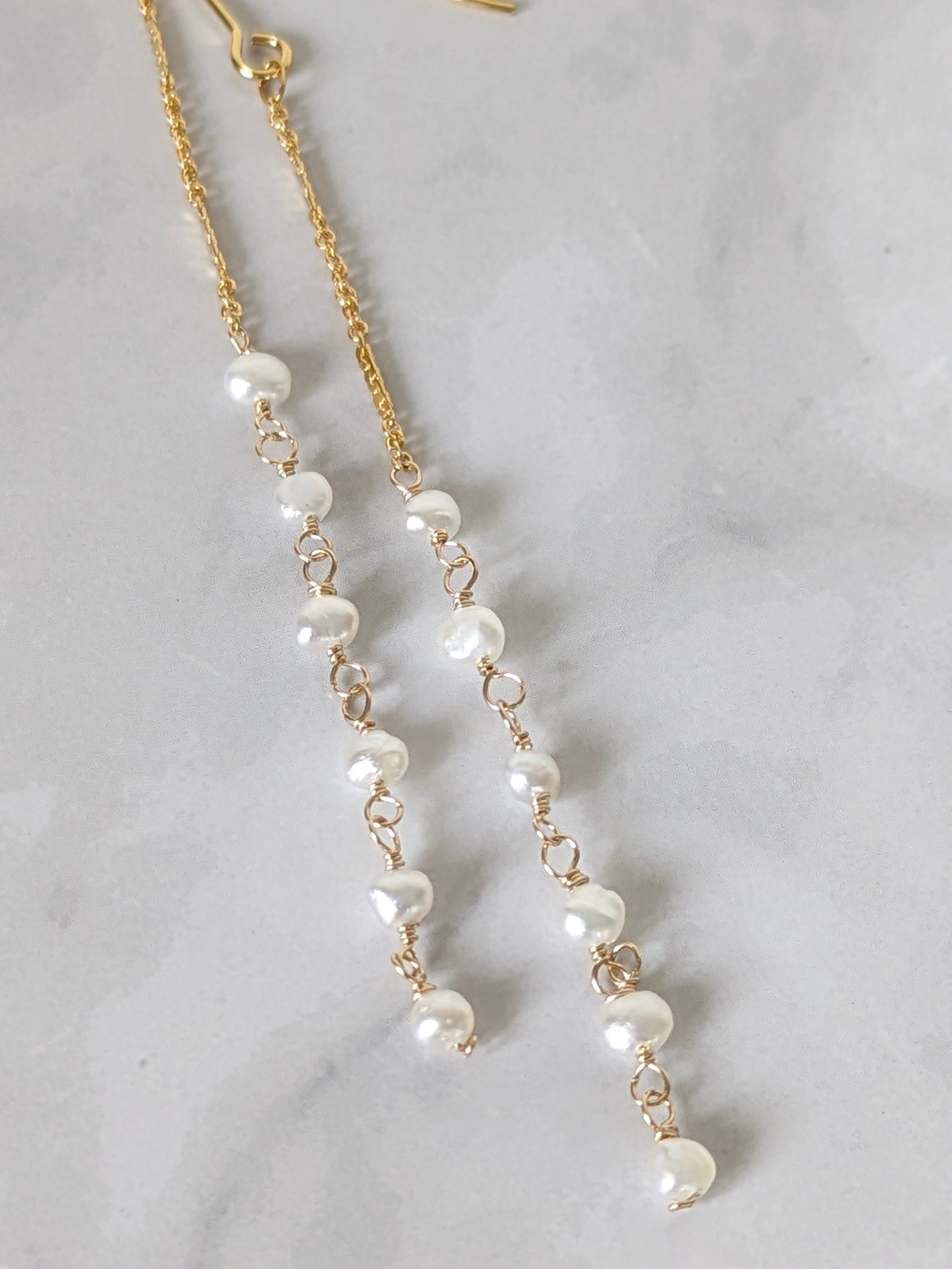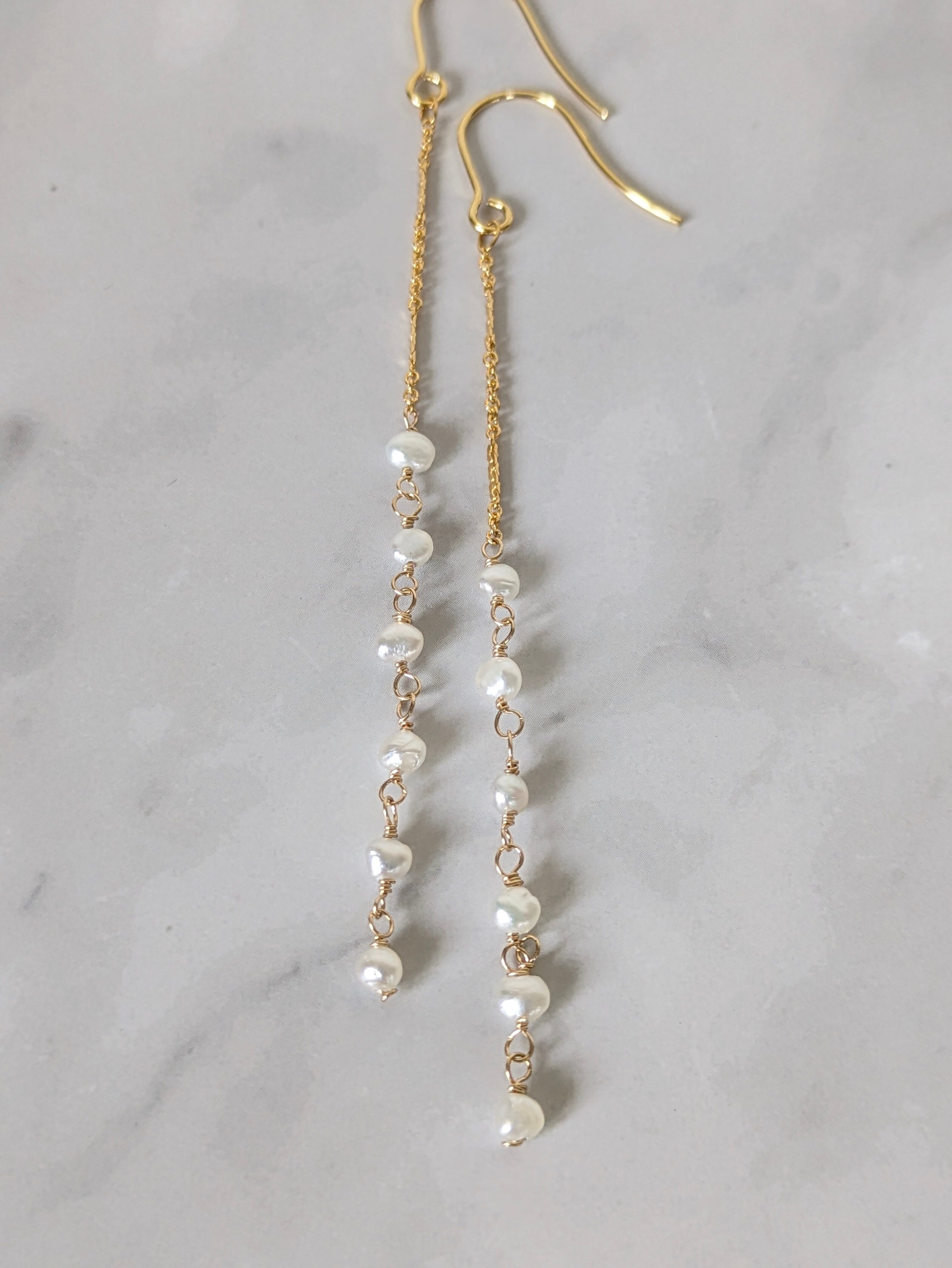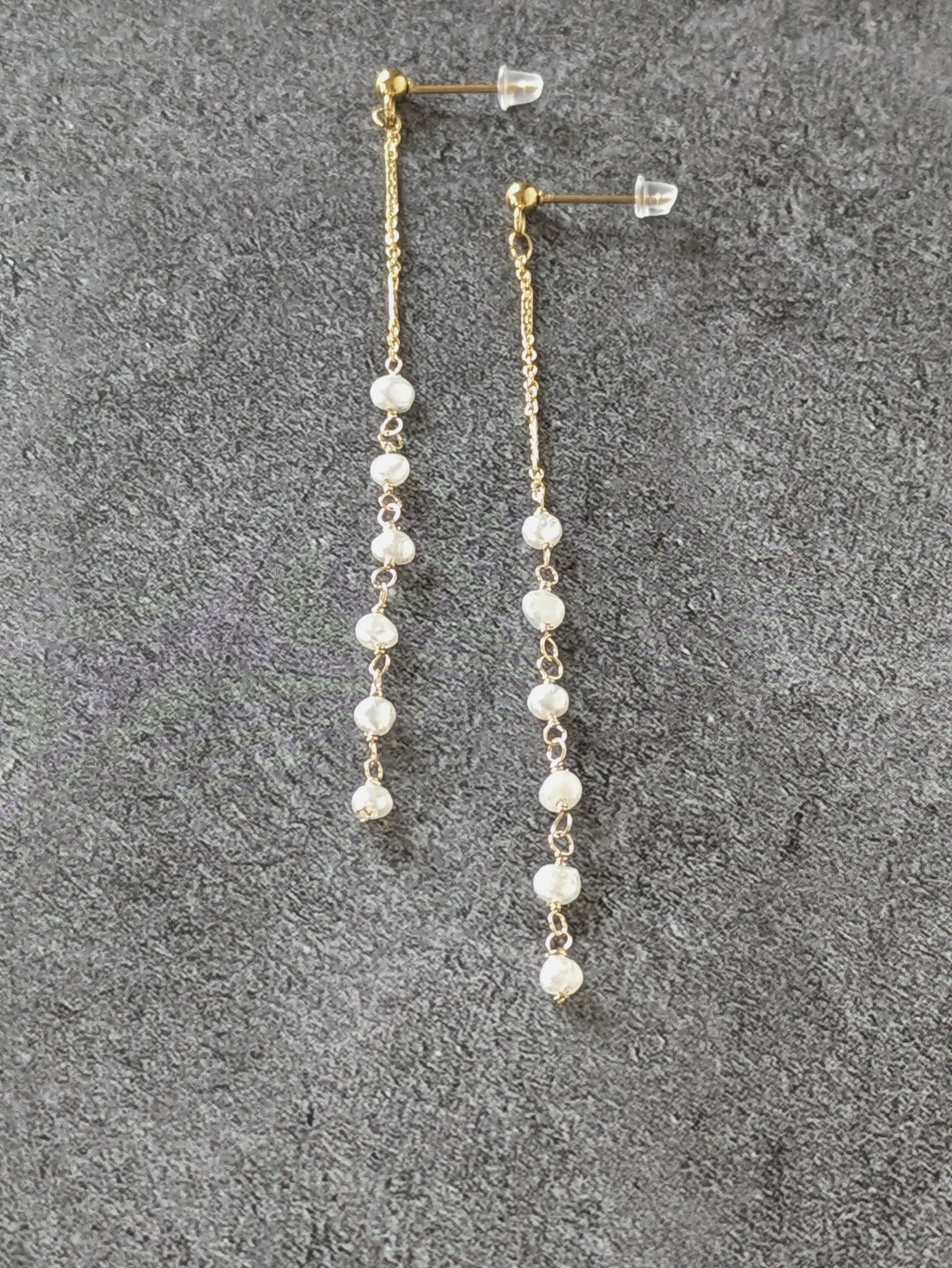 あこやパール ケシパール×14kgfチェーン Iライン イヤリングorピアス